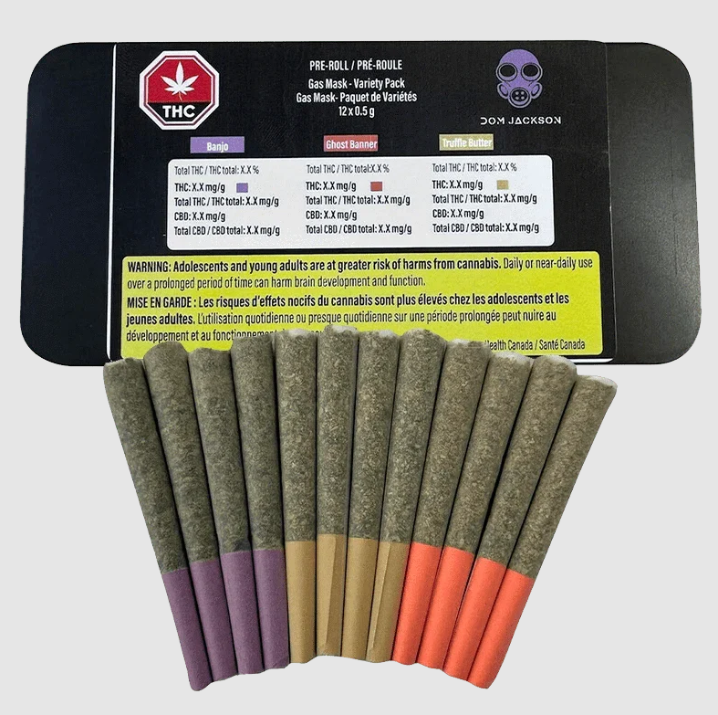 Cannabis connoisseurs in Ontario should familiarize themselves with Dom Jackson. This cultivator focuses on developing superior strains that will accentuate & exploit the best features associated with cannabis. Discerning which product from Dom Jackson is best for yourself isn’t needed, as this brand has launched the Gas Pack Pre-Roll Variety Pack in 3×0.5g and 12×0.5g options. You’ll be able to experience three of the most popular & prominent strains from Dom Jackson. That includes Ghost Banner, Banjo, and PPJ.